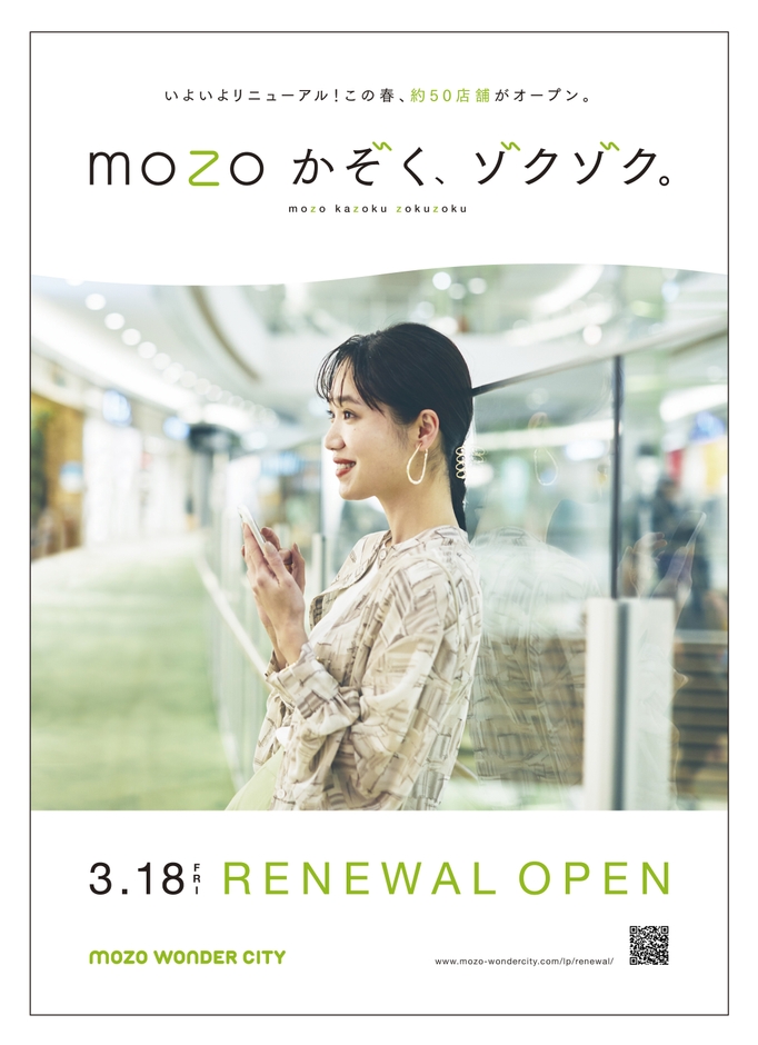 本大規模リニューアルから、「モゾモゾ」と動きを活発に「ぞくぞく」(続々)とmozoにたくさんの新しい仲間(新店舗)が加わり、たくさんのmozoファンに来ていただけるよう願いを込めています。