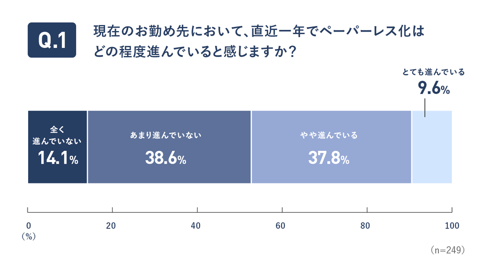 Q1 現在のお勤め先において、直近一年でペーパーレス化はどの程度進んでいると感じますか?