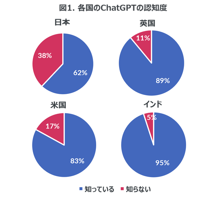 ChatGPTの認知度、日本は62%、英国や米国では80%以上、インドでは95%もーChatGPTをはじめとした生成AIに関する意識調査ー