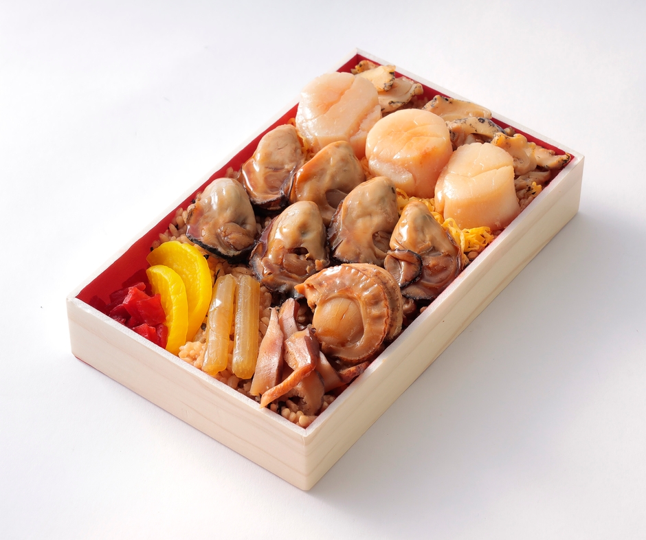 特選牡蠣と貝づくし重(道産帆立貝柱バター焼き入り)