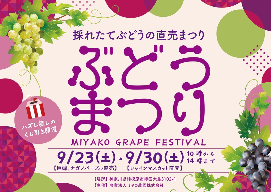 ミヤコ農園株式会社が直売イベント「ぶどうまつり」を 9月23日(土)、9月30日(土)に開催!