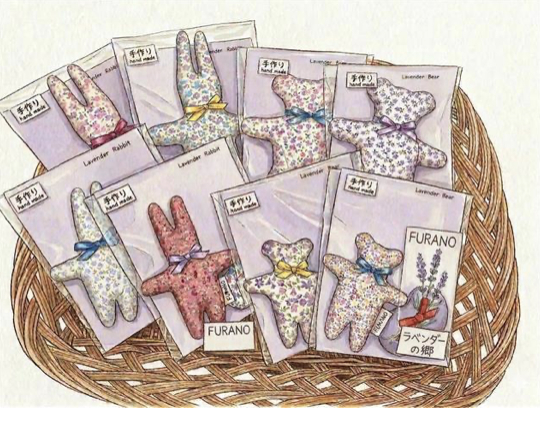 庭で採れたラベンダーを収穫してすぐに編み込んで作るラベンダースティック。また、以前のSHOKAY展示会では、富良野「ラベンダーの郷」のみなさんが作ってくださった動物の形のサシェをギフトとしてお配りしたことも。あの愛らしいサシェは今も、クローゼットの小さなお守りとして活躍しています。