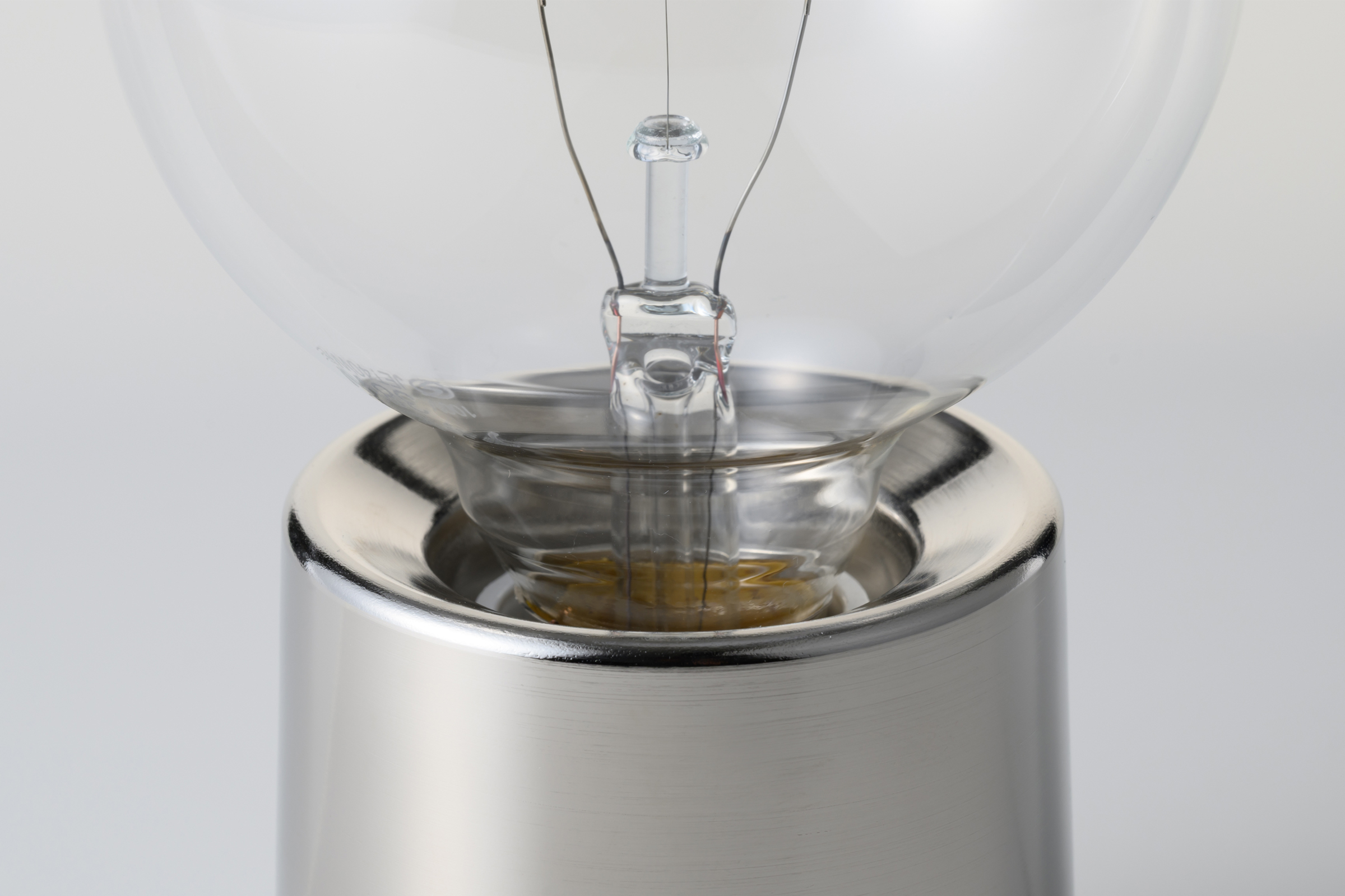「BULB LIGHT CAP」の核となるのは、熟練職人が一点ずつ仕上げる「ヘラ絞り」の技術です。回転する金属板に「へら」と呼ばれる棒を押し当て、少しずつ形を変化させていくこの技法により、滑らかなくびれとエッジの効いたミニマルなシルエットを実現しました。無駄を削ぎ落としたフォルムは、電球をセットした瞬間により美しさを放ちます。