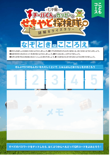 イベント名 :むず難!? チーバくんとカッピーのせきやど探検隊
