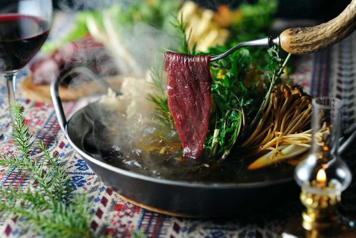 【星のや富士】3密回避ができる絶景テラスのこたつで旬の狩猟肉(ジビエ)を味わう「山麓の鹿しゃぶ鍋」冬季限定で提供|期間:2021年1月8日〜3月15日