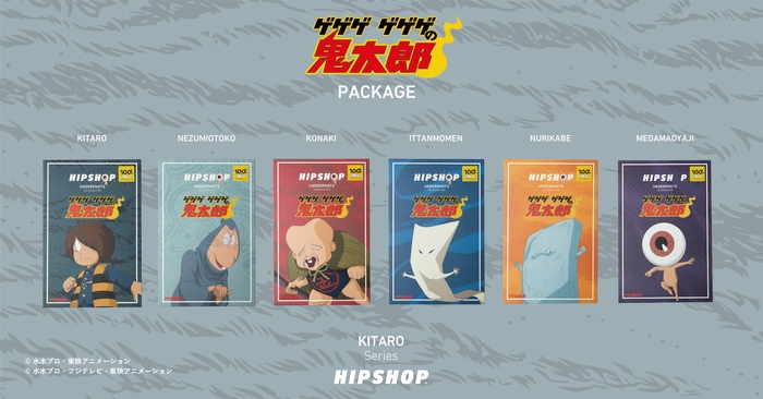 1968年に放送を開始したテレビアニメ第1期~2018年に放送を開始した最新の第6期まで、全6シリーズを同時使用してキャラクター展開を行うプロジェクト「ゲゲゲ ゲゲゲの鬼太郎」とHIPSHOPがコラボレーション。