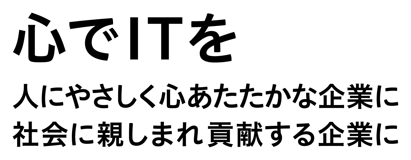 思いやりや誠実さ、志、情熱、粘り強さといった“心”を大切に、人にやさしく、社会に親しまれ、貢献する企業でありたい。“心でITを”という新しいブランドメッセージには、そういった意志と姿勢が込められています。