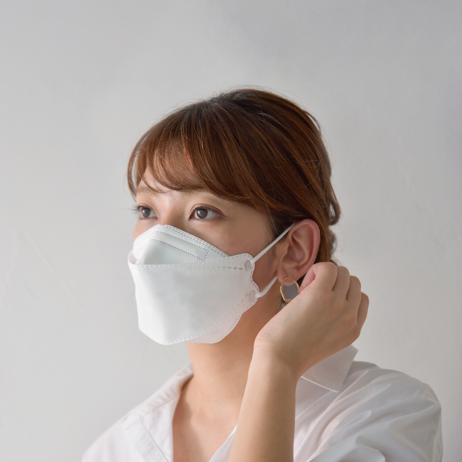 耳ゴムは程よいやわらかストレッチ素材でデリケートな耳後ろが痛くなりにくい素材です。
