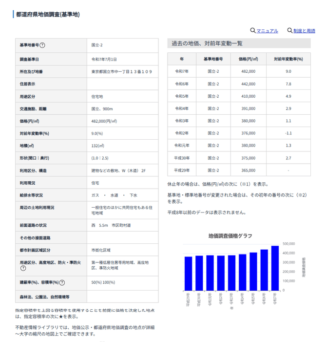 ※エリア:基準地価(価格)の変動率が高かった神奈川県内の基準地(国立-2)周辺のマンション