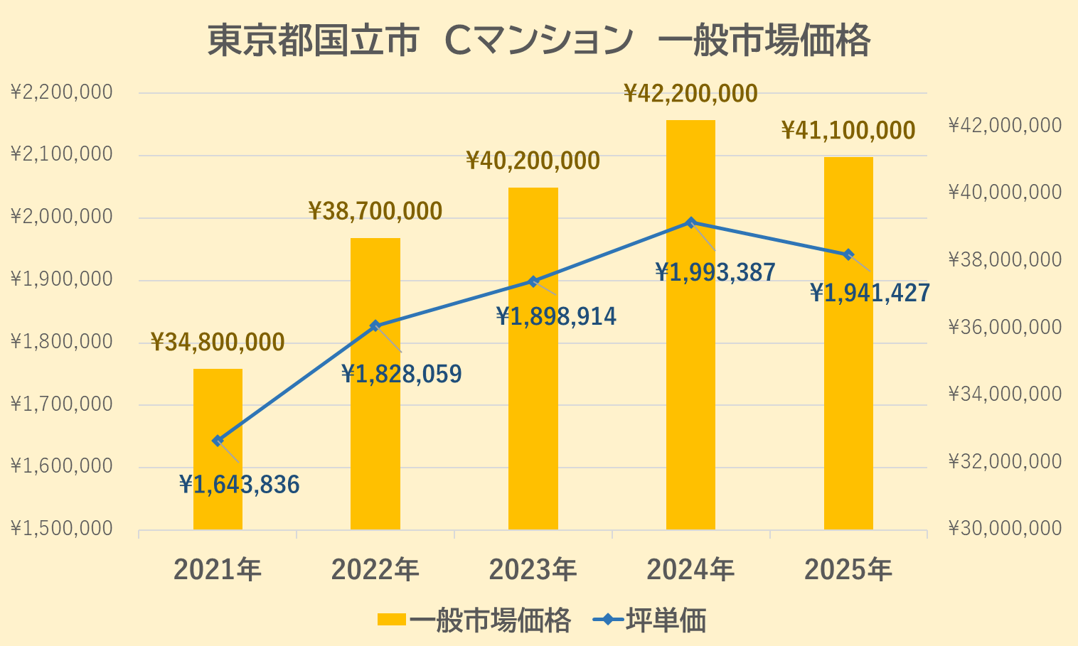 Cマンションの一般市場価格・坪単価の推移は上記【図5】の通りです。