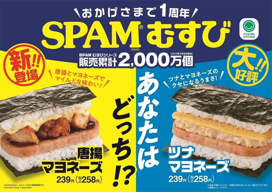 「SPAM(R)むすび」発売1周年記念! 販売累計2,000万個突破の大人気「SPAM(R)むすび」に 新たな人気具材「唐揚マヨネーズ」が新登場!