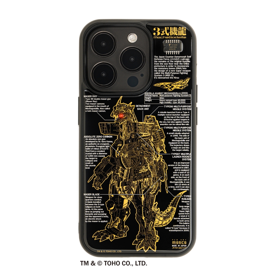 株式会社電子技販(所在地:大阪府吹田市、代表取締役:北山 寛樹)は、プリント基板の設計製造技術や設備、デザイン力を使用した基板アート雑貨「FLASHシリーズ」より、2002年に公開された映画『ゴジラ×メカゴジラ』に登場する3式機龍をデザインした「FLASH 3式機龍 基板アート iPhone 15 Proケース、15 Pro Maxケース」をmoeco直販ショップや取扱店で2023年11月14日(火)から順次販売いたします。「FLASHシリーズ」では、基板の緻密なデザインだけでなく、電波でLEDが光る回路を搭載していることが大きな特長となっています。※電波でLEDが光る回路は2020年に特許登録済み(特許番号6667777)。