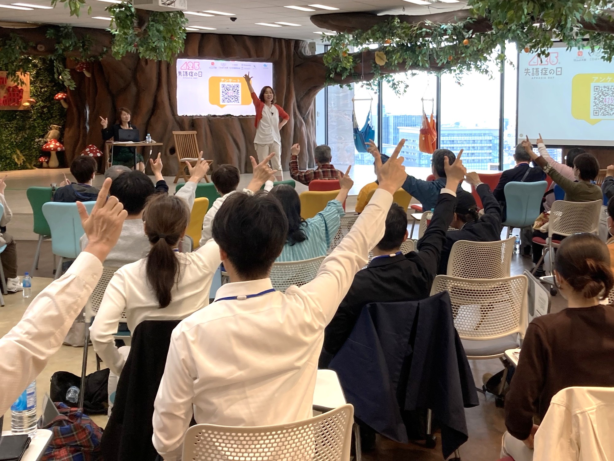 脳卒中や事故などで脳の言語中枢が損傷し、言葉を操る機能に障害が生じる「失語症」への理解を深めるべく制定された「失語症の日」の4月25日、東京都中央区のサイボウズ東京オフィスなど全国18か所で「第7回失語症の日記念イベント」が開催された。