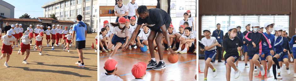 プロバスケットボールチームの選手やコーチが一緒に試合をしたり、プロの技術を披露したり、子どもたちにスポーツの楽しさや喜びを伝える授業です。