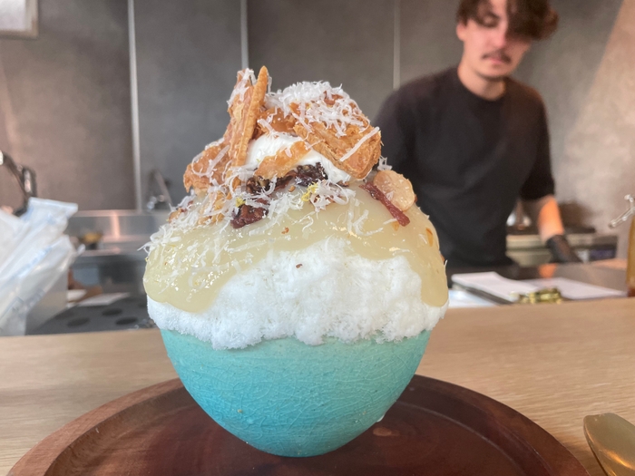 オープンキッチンスタイルの店内では、氷の削りからソースの重ね、仕上げのトッピングまで、まさに“目の前で完成する芸術”としてのかき氷をご体験いただけます。