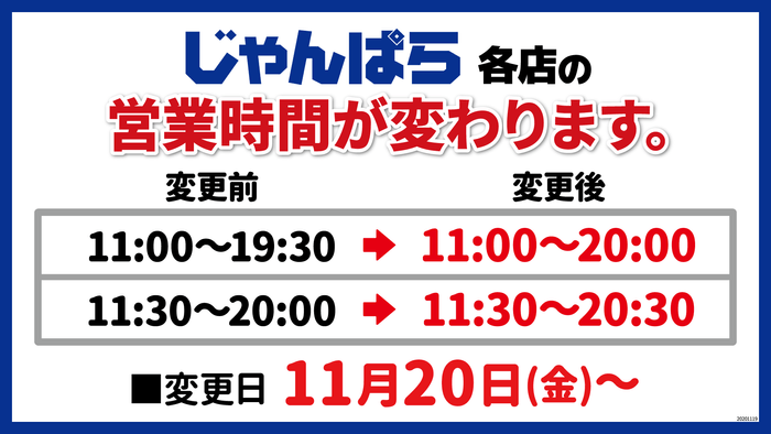 各店舗の営業時間の詳細は当社HPを( https://www.janpara.co.jp/press/p201119/ )をご覧ください。