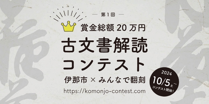 今回のコンテストの対象となるのは、長野県伊那市の古文書資料。日本初のオンライン翻刻サービス「みんなで翻刻」内で、初めてのコンテストを行い、上位者には謝礼金として総額20万円を贈呈します。