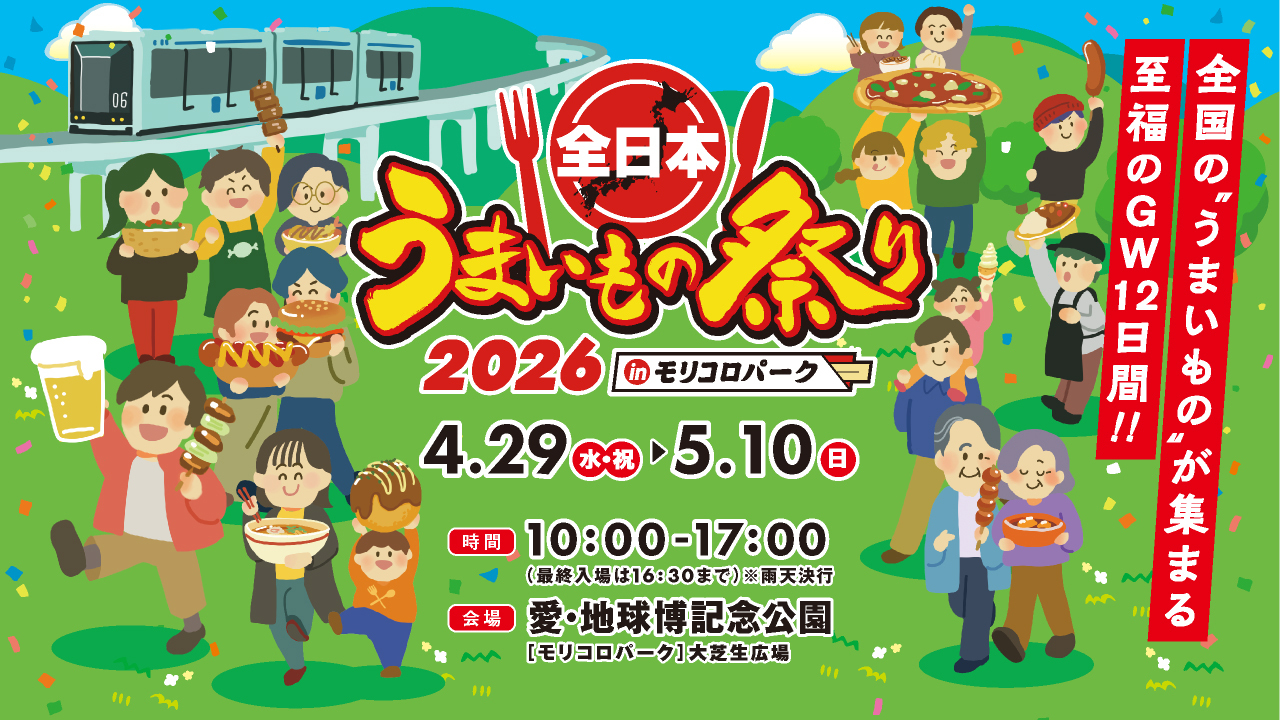 全日本うまいもの祭り実行委員会は、毎年10万人以上の来場でにぎわうGWのフードフェス、「全日本うまいもの祭り2026 in モリコロパーク」を4月29日(水・祝)~5月10日(日)に、愛知県長久手市の愛・地球博記念公園(モリコロパーク)で開催することを決定いたしました。