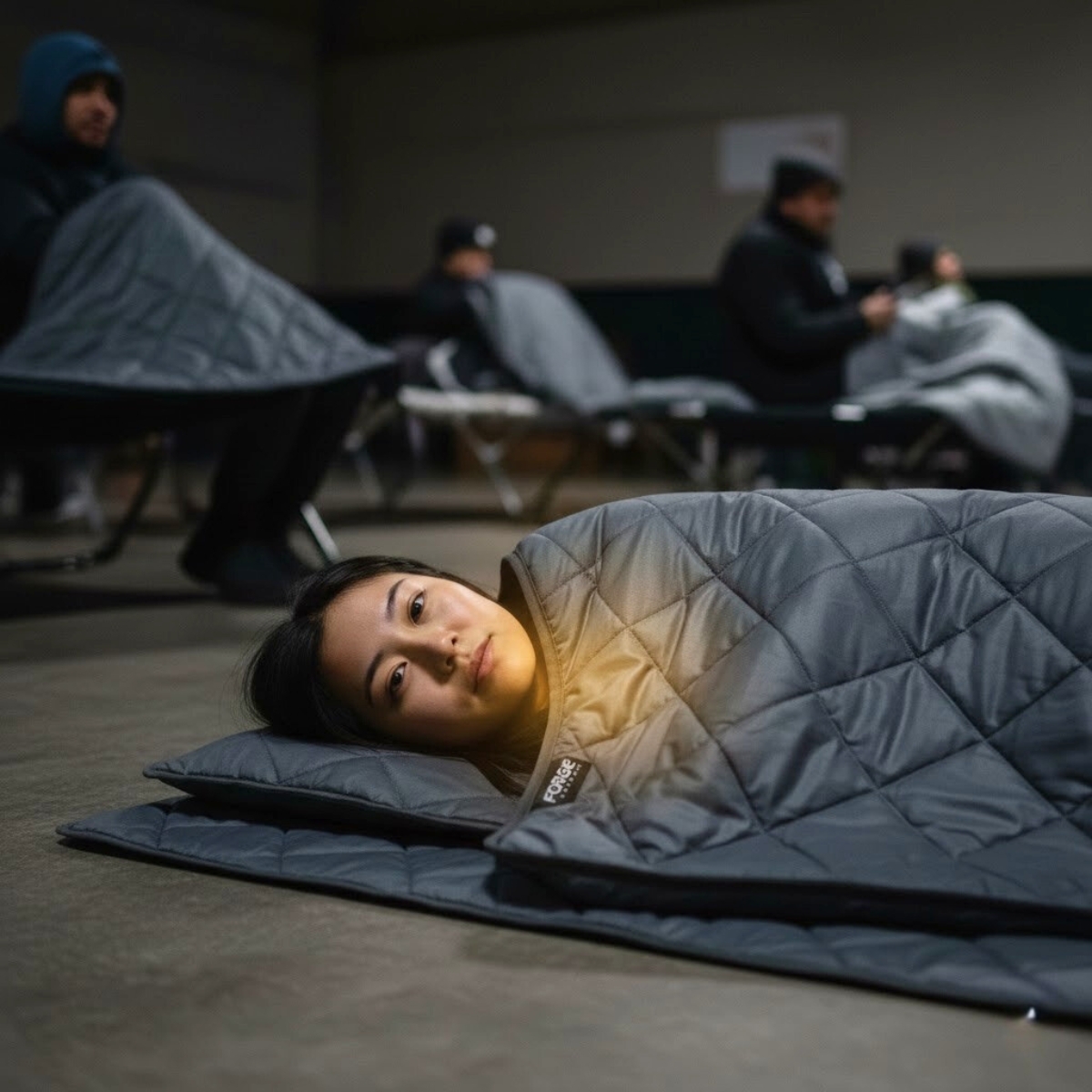 災害時、避難所の床は硬く冷たく、体温を容赦なく奪います。SOLARCOREは「体重で潰れても暖かさが変わらない」ため、床からの熱伝導を遮断する高機能マットとしても優秀です。また、従来のアルミ製エマージェンシーブランケットのような「カサカサ音」が一切しないため、ストレスの多い避難所生活でも静かに、かつ確実に体温を守り抜くことができます。