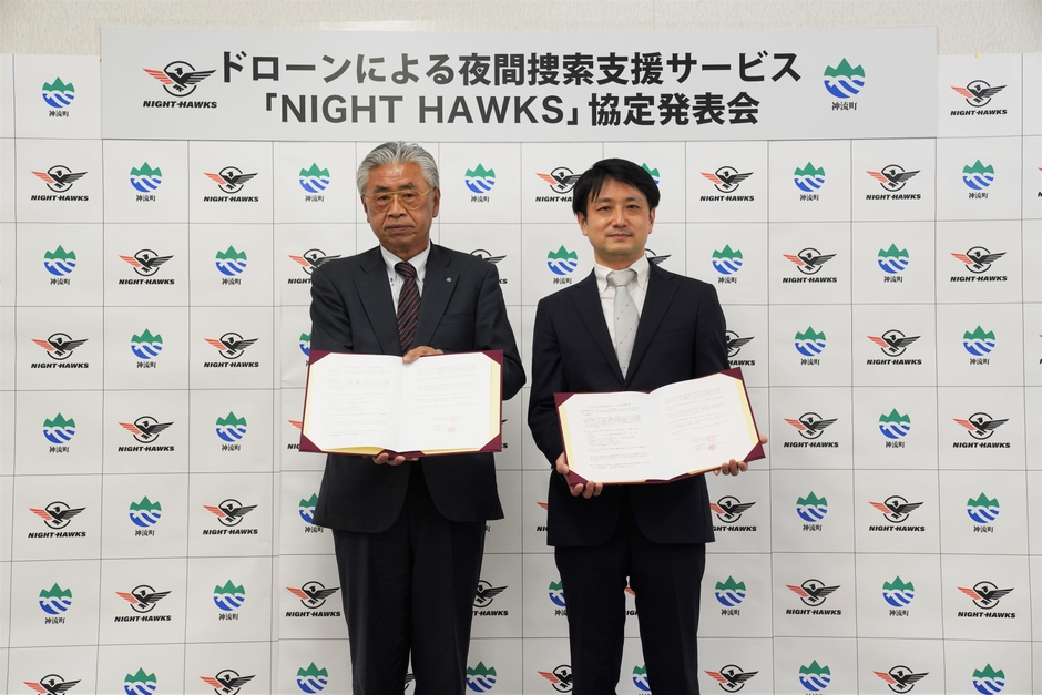関東甲信越エリア初! ドローンによる夜間の捜索支援サービス 「NIGHT HAWKS」に関する連携協定を群馬県神流町と締結 2022年3月28日に協定発表式・デモフライトを開催