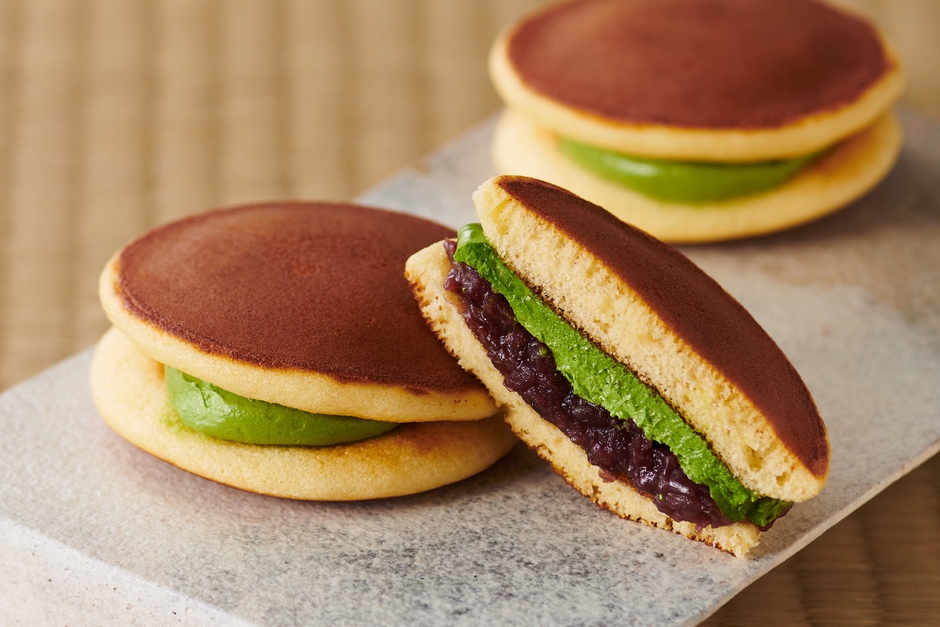 昔から馴染みのあるどら焼きを、鮮やかな色合い、抹茶の良い風味を損なわない甘さ加減、ボリューム感を大切に豪華に仕上げました。ふわふわ感としっとり感を大切にした生地に、なめらかな優しいクリームを合わせた口当たりの良さも特徴です。そこに、程よい量の餡を感じていただける贅沢な時間をお楽しみください。