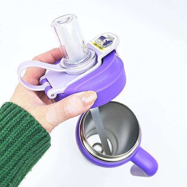 手持ちがしっかりついており持ちやすいです。ちなみに車などのドリンクホルダーにも対応しているので車内でも便利です。【サイズ】直径102(本体径78×298mm(ハンドル部含まず)、【容量:830ml】
