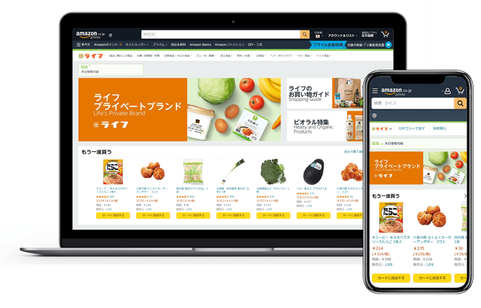 株式会社ライフコーポレーションは、ライフ実店舗で取り扱っている生鮮食品や惣菜をAmazonを通じてご自宅などへお届けするサービスを提供しており、多くのお客様から大変ご好評をいただいております。