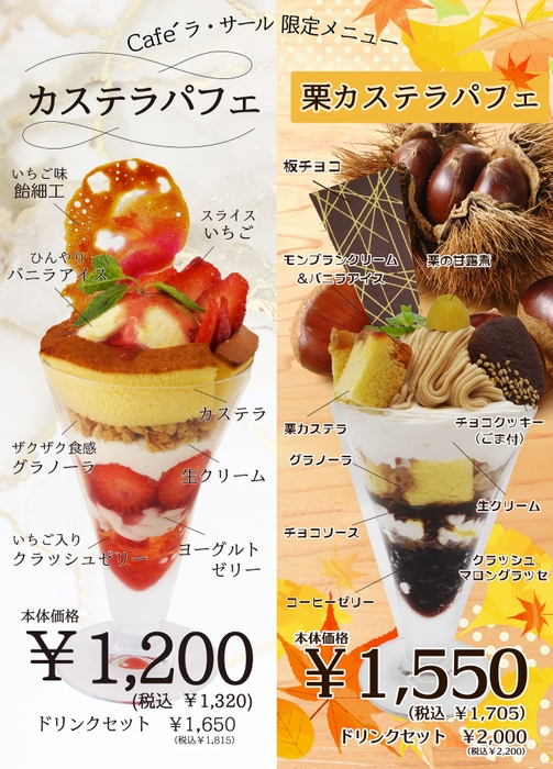 ■商品・価格:栗カステラパフェ 本体価格1,550円 (税込1,705円)