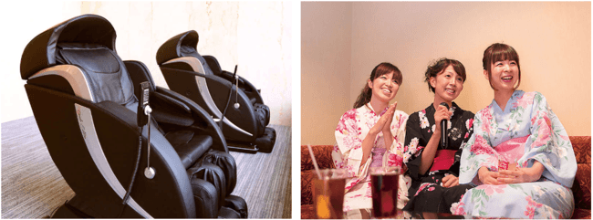 他にも、最新式マッサージチェアや、浴衣で歌えばいつもとまた違った雰囲気で盛り上がるカラオケルームも無料でお楽しみいただけるようになりました。