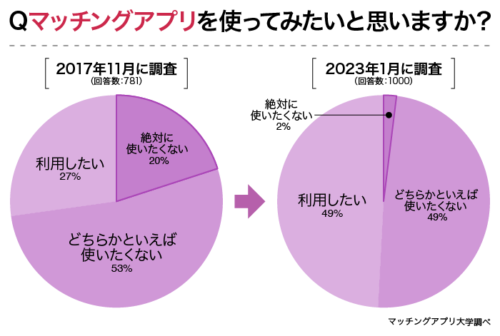 マッチングアプリ「絶対に使わない」10分の1以下まで減少