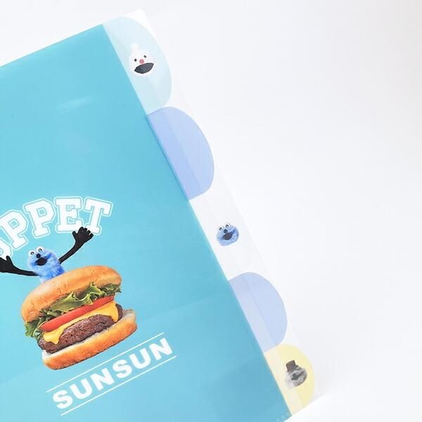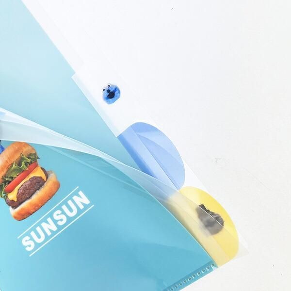 続いてご紹介するパペットスンスンの文具は、スンスンとハンバーガーが描かれた、涼し気なブルーのクリアファイルです。