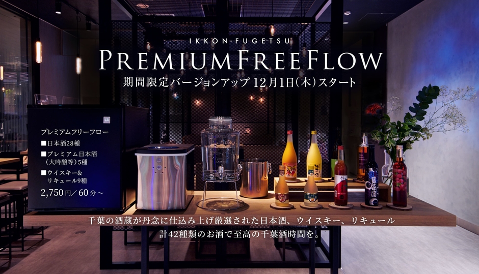 JR千葉駅ペリエ千葉内 日本酒プレミアムラウンジ「一献風月」で 千葉の酒蔵の厳選された日本酒、ウイスキー、果実リキュールが 飲み放題に新登場!12月1日(木)から期間限定で提供
