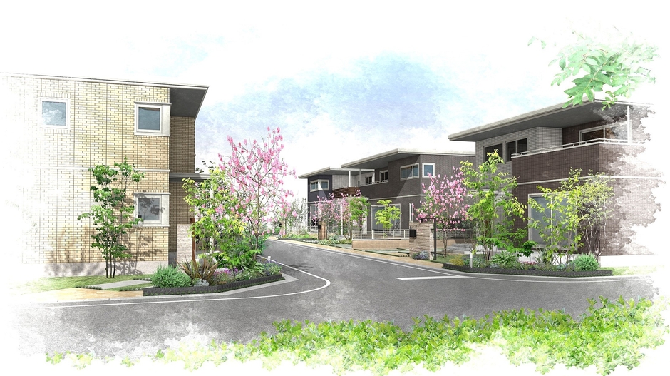分譲地を4つのエリアに分け、エリアごとに四季を感じる樹木(シンボルツリー)やロードサイドの舗装材等を設定。華やかな色合いを演出しながら、個性と調和のあるまちなみを創り出します。