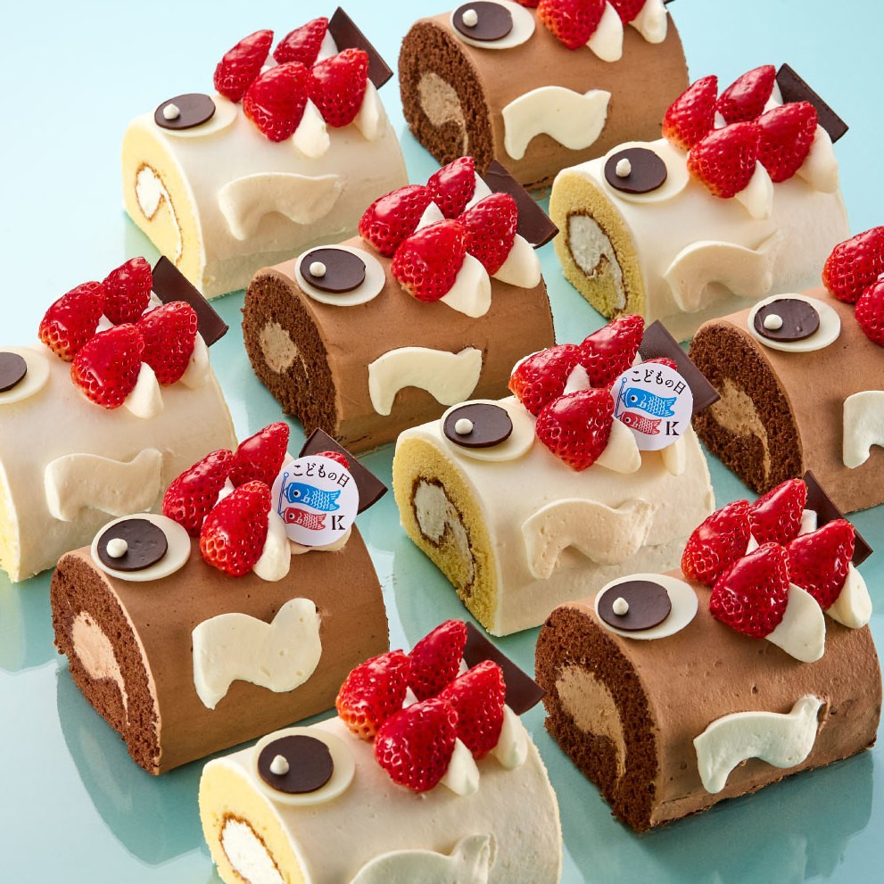 真っ赤ないちごと生クリーム、チョコレートでこいのぼりを描いた、1~2名様向けのかわいらしいロールケーキです。