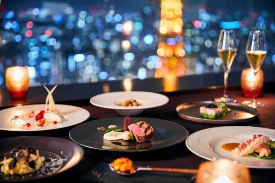 鮟肝や寒鰤、虎河豚など厳選された食材の数々を一皿一皿丁寧に仕上げた職人の技光る寿司コース。和食コースは前菜からデザートまでオマール海老や黒毛和牛などの高級食材を使用し、繊細で、見た目からもワクワクさせてくれる料理の数々をご用意いたしました。最上階42階から一望できる絶景とともにクリスマスの夜をお愉しみください。
