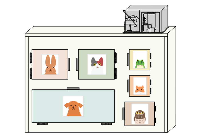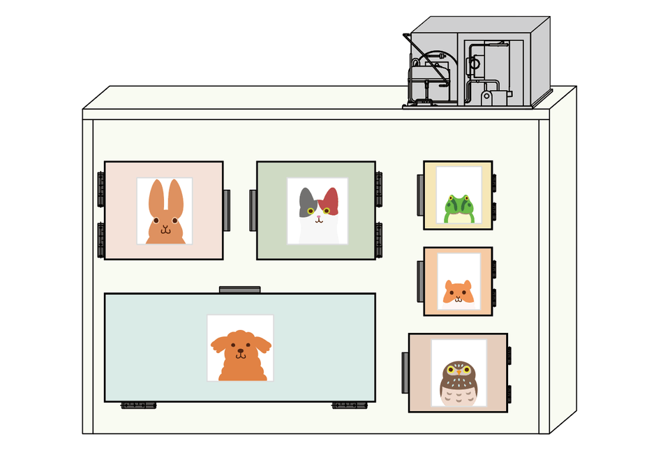 - それぞれの生きものの大きさに合わせた扉・ラックを自由に設置できます。