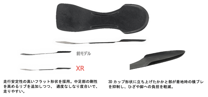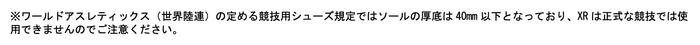 ※ワールドアスレティックス(世界陸連)の定める競技用シューズ規定ではソールの厚底は40mm以下となっており、XRは正式な競技では使用できませんのでご注意ください。