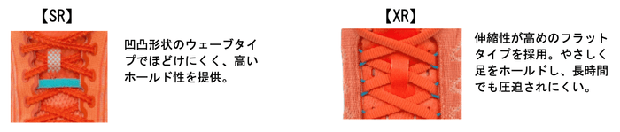それぞれの特性に合わせたこだわりのシューレースを採用し高いホールド性を実現。