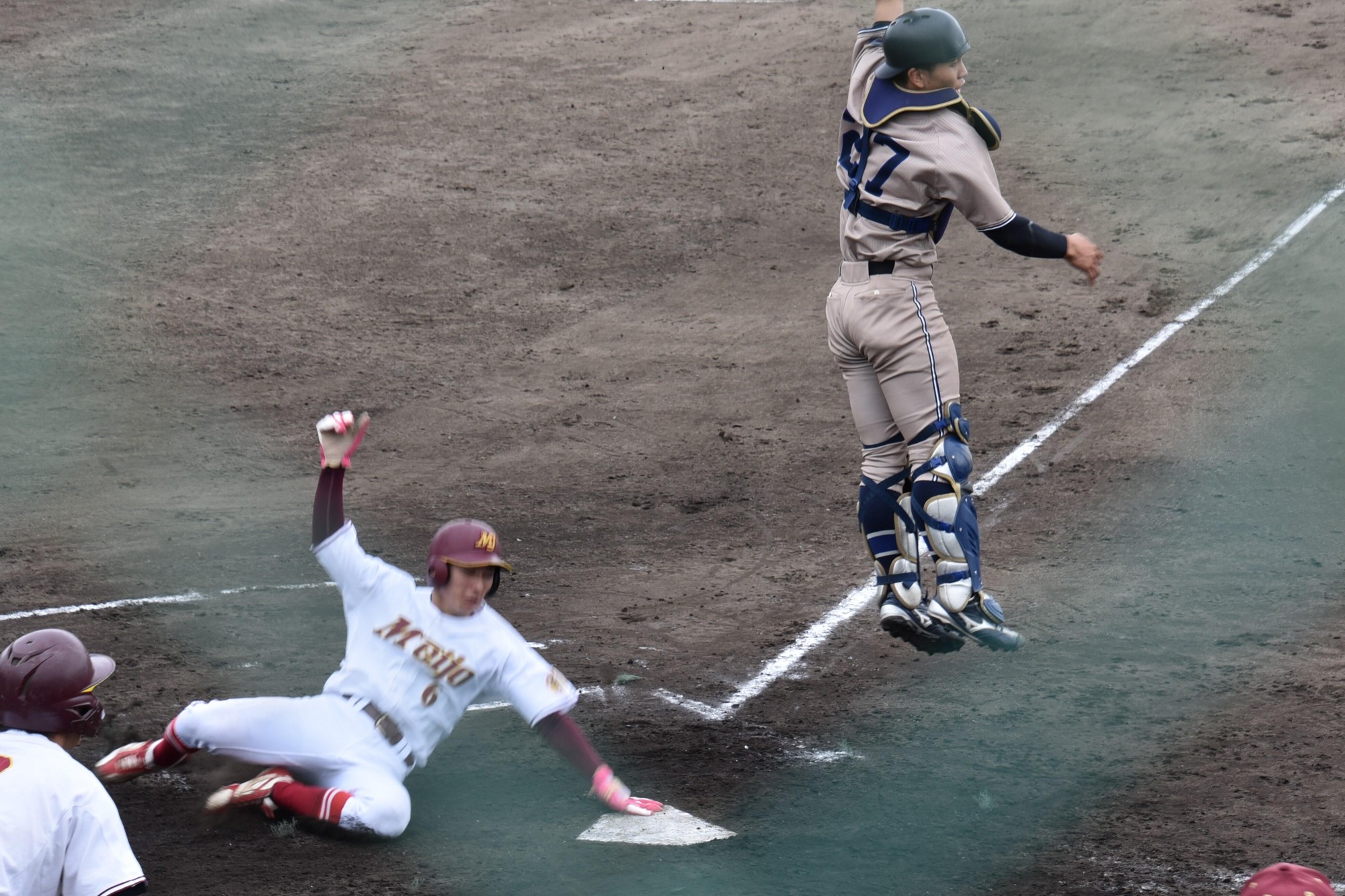 試合は中部大学に先制されましたが、0-3の3回に山蔭一颯主将(法学部4年)と柳勇気選手(都市情報学部3年)の犠牲フライで2点を返して2-3と追いすがります。