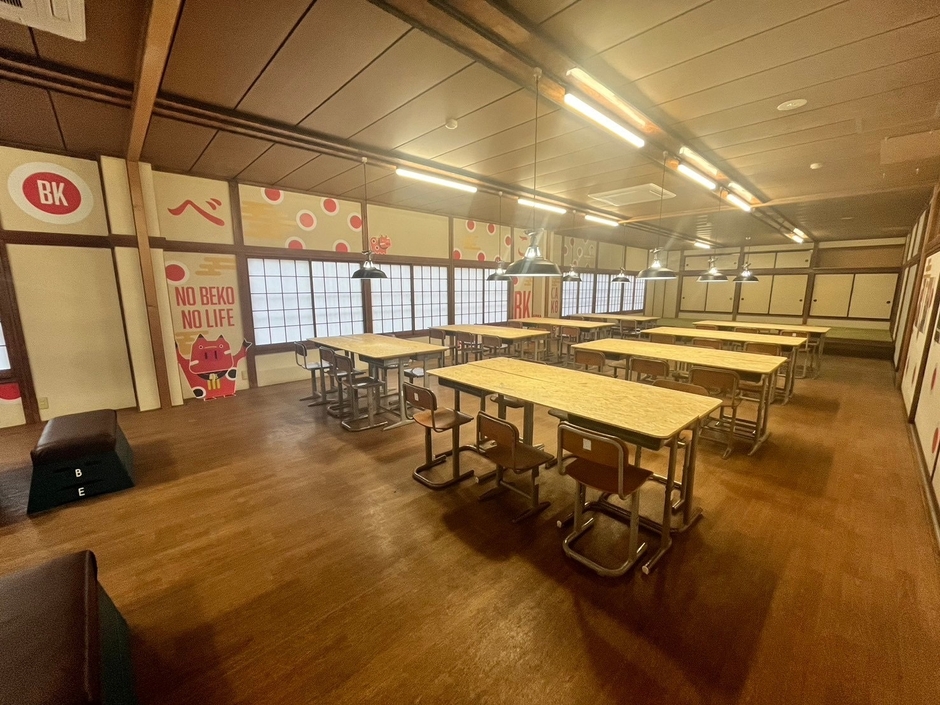 伝統的な赤べこだけではなく、数多くの種類の赤べこや、赤べこに関係するお土産品も用意しています。また廃校の椅子や机、跳び箱などを利活用した絵付け体験コーナーや実際に職人が赤べこを制作しているところを見学することができる製作所も設けています。