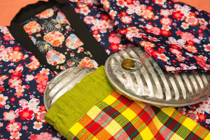 3 桜柄の綿入りはんてんと湯たんぽを貸出