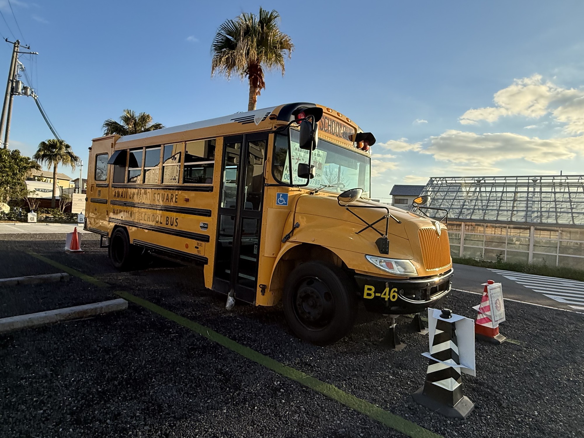 本場アメリカで実際に使用されていたスクールバスを改装した常設型キッチンカーです