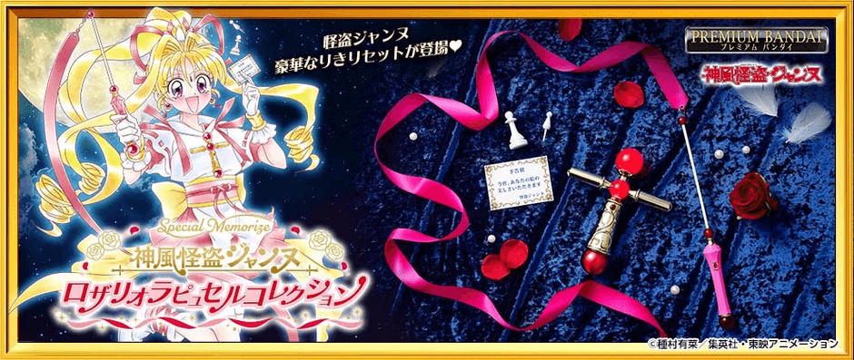 1999年より放送されたテレビアニメ『神風怪盗ジャンヌ』より、主人公の日下部まろんが怪盗ジャンヌに変身する際に使用する「ロザリオラピュセル」をはじめ、武器として使用する「リボン」や悪魔を封印するための「チェス」そして「予告状」を、大人向けなりきり玩具仕様で商品化いたします。