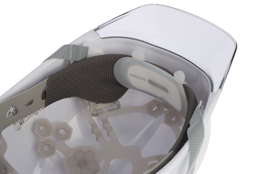 ヘルメット内側のヘッドバンドに巻き付けるだけで使用可能。装着後は視界に入らず、作業の妨げになりません。