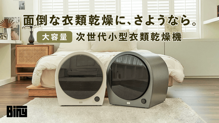高い乾燥性能・大容量を実現した次世代小型衣類乾燥機 「Biny」が日本上陸!12/28にMakuakeにて先行予約販売開始