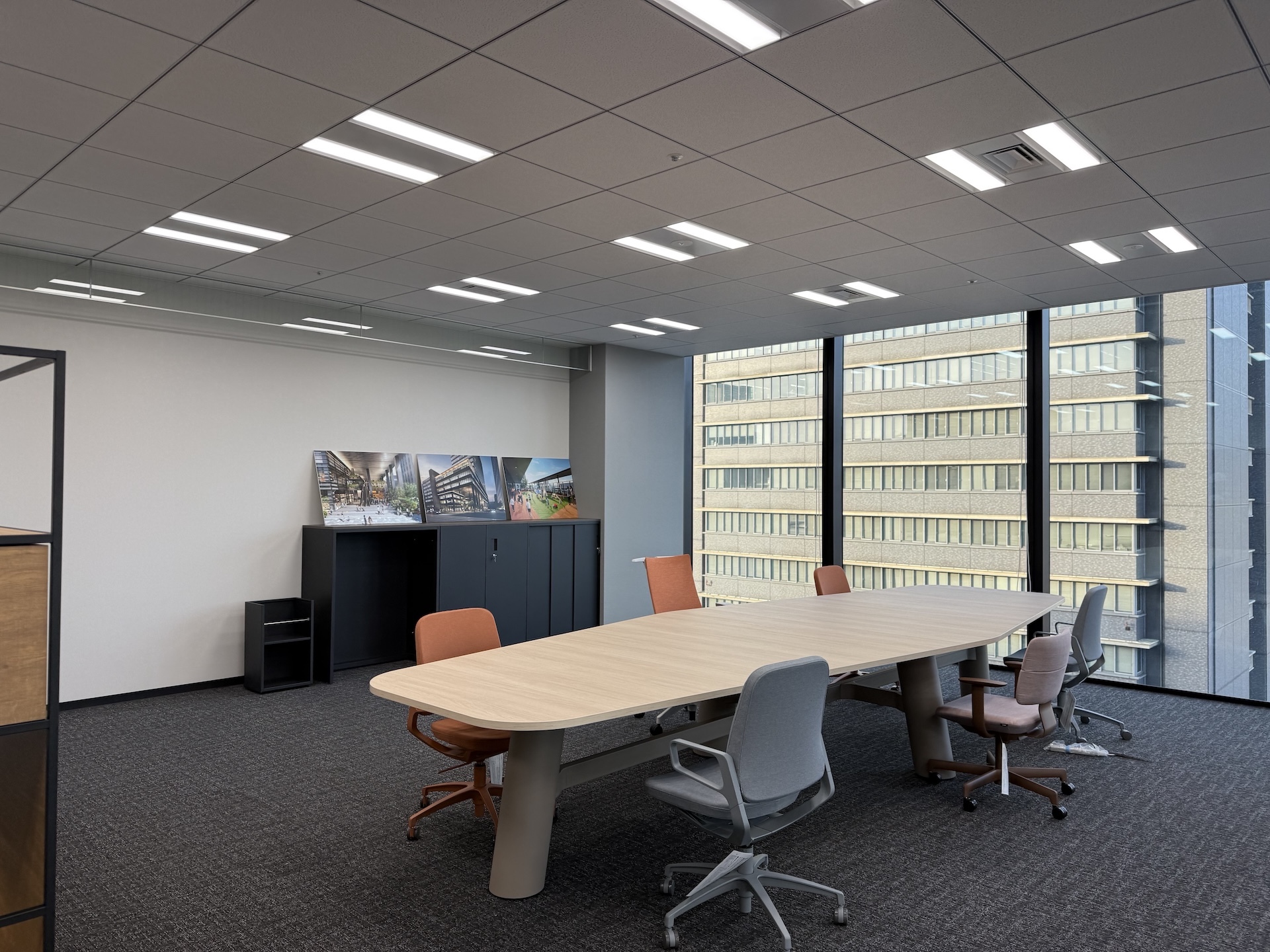 本ルームは、実際の利用シーンを想定して什器などをレイアウトしています。家具のスケール感や機能性、働く人の動線、さらにはコミュニケーションの広がりをリアルに感じることができ、入居後の運用やワークスタイルを高い解像度で思い描いていただける空間となっています。