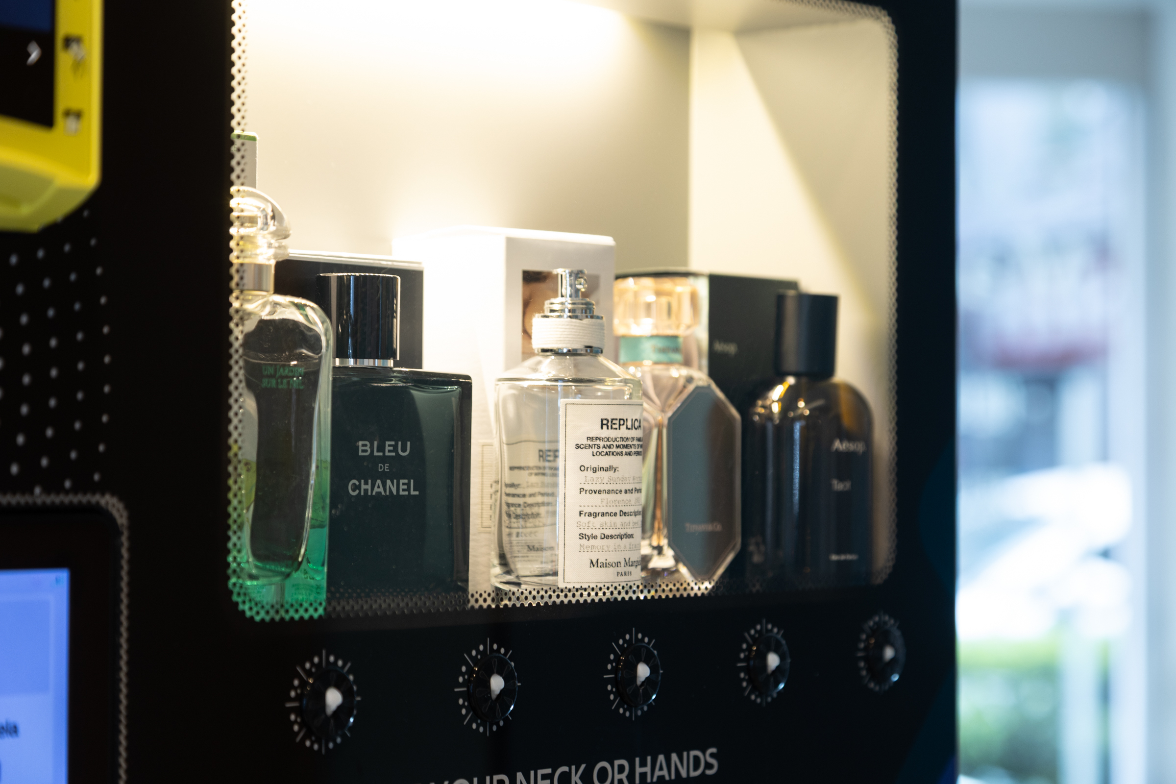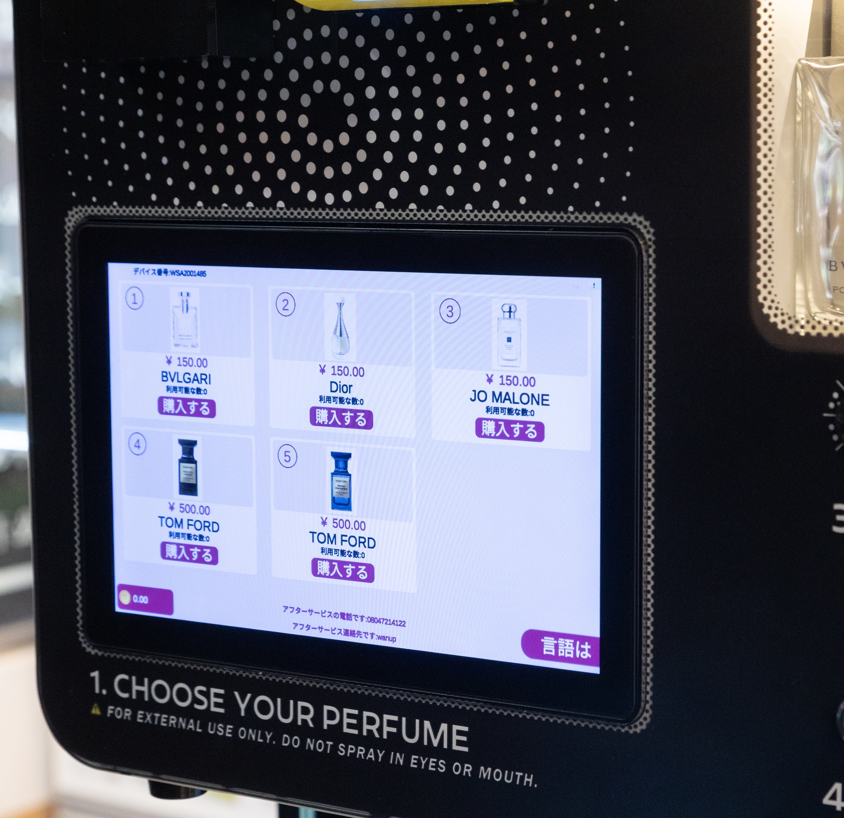 現在、Z世代を中心に「その日の気分で香りを着替える」ライフスタイルが定着し、香水自販機が記録的なヒットを飛ばしています。店舗内には、最新鋭のスプレー型香水自販機を3台配置。世界中の高級フレグランスを含む15種類の香りを、150円からという驚きの価格で提供しています。