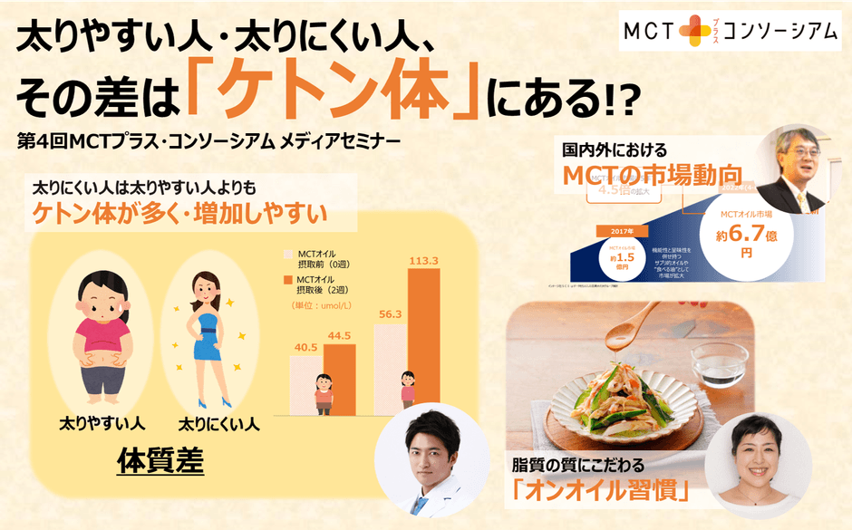 <「MCTプラス・コンソーシアム」第4回メディアセミナー開催> 太りやすい人・太りにくい人、その差は「ケトン体」にある!?