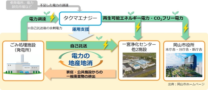 タクマエナジーは、全国各地で、廃棄物やバイオマス由来の電力を地産地消する取り組みを実施しており、本事業は12件目(うち自己託送制度を活用した取り組みは5件目)となります。これまで培ってきたノウハウを活用し、岡山市が目指す経済と環境の好循環の創出を支援してまいります。