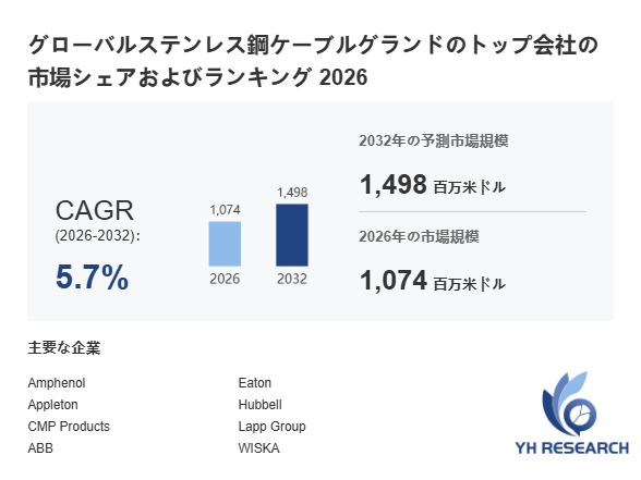 本記事は、YH Researchが発行したレポート「グローバルステンレス鋼ケーブルグランドのトップ会社の市場シェアおよびランキング 2026」 を紹介しています。